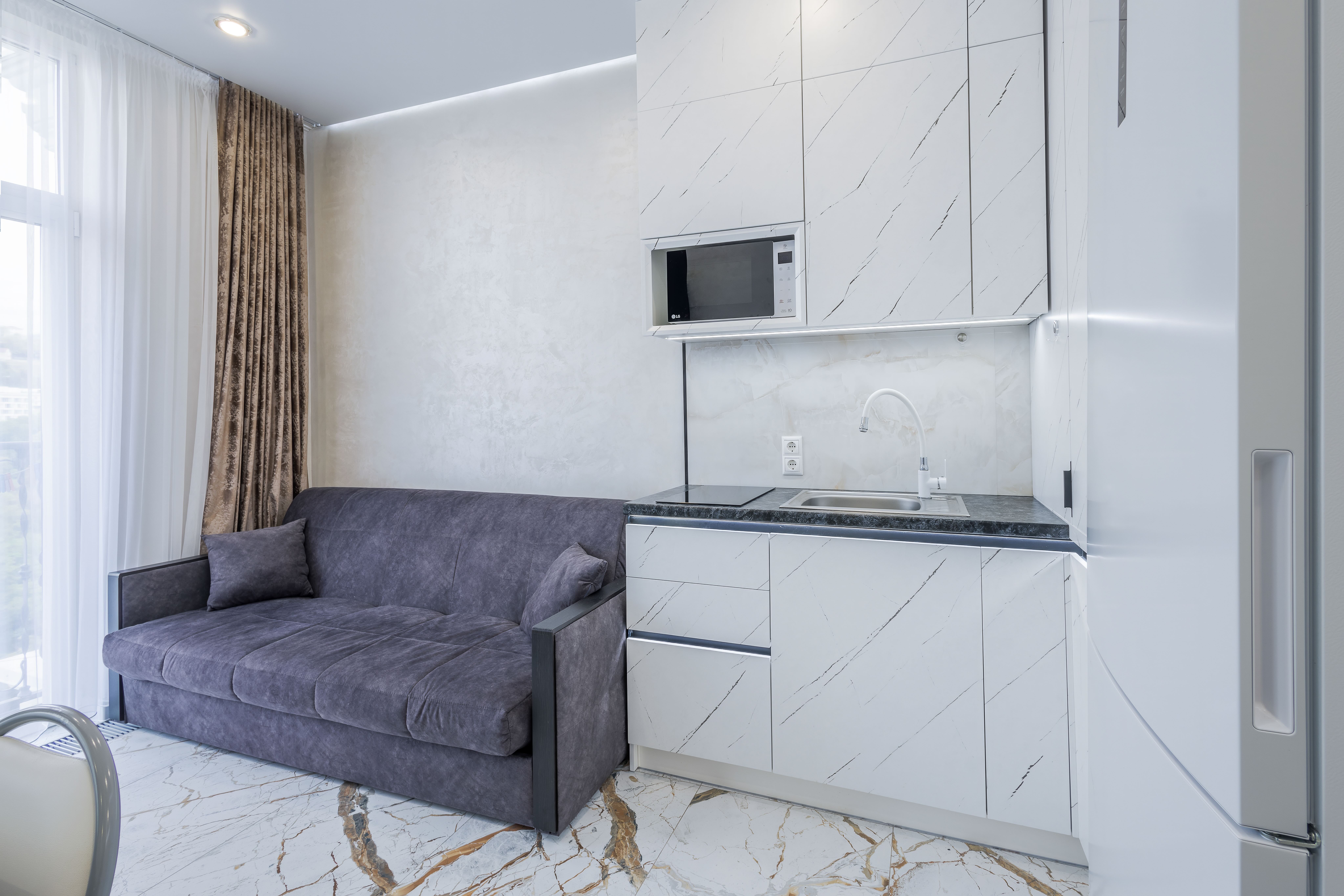 Номер расположен на 14 этаже с боковым видом на море и невероятным видом на парк Дендрарий. 1 спальня и 1 кухня-гостиная. Новый ремонт. Качественная дорогая мебель и техника. Наличие 2 комнат, гардеробной, кухни, стиральной машины, 2 Смарт ТВ, раздельного санузла - сделает ваше проживание более комфортным. Вместимость до 4 гостей Кровать 180см Диван-кровать 160см (единый матрас, без стыков) В доме 2 панорамных лифта с видом на море Круглосуточная охрана и консьерж. Видеонаблюдение на всей территории комплекса